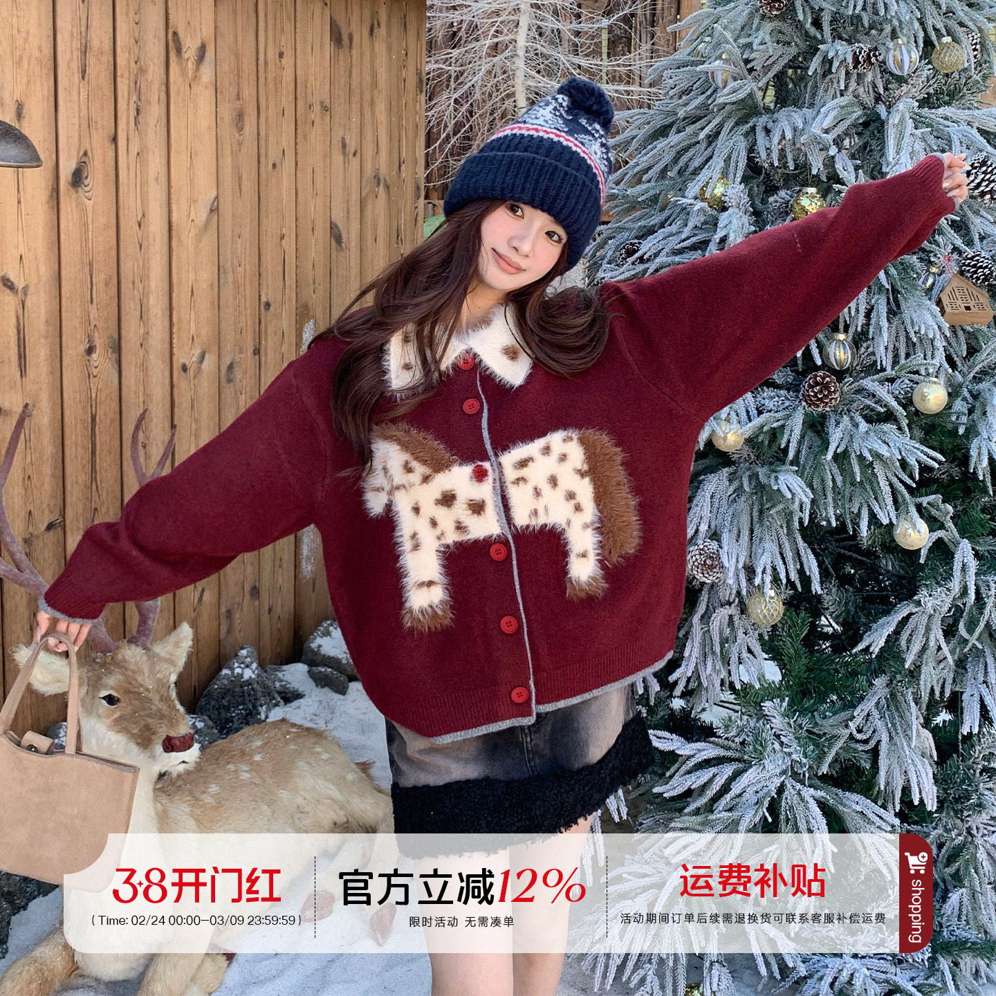 橘子树在哪儿新年穿搭红色毛衣外套冬季女款本命年马年针织衫上衣