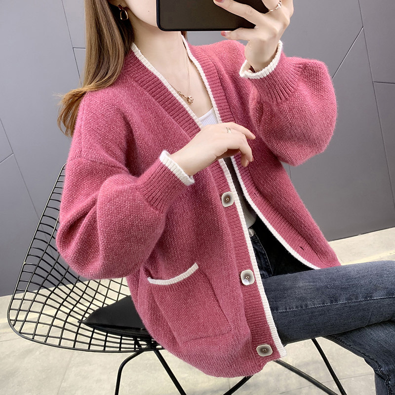 森女部落原创粉色宽松针织开衫外套春秋穿搭毛衣女款新款粉色上衣