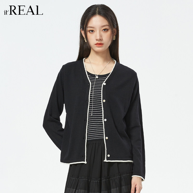 it'real瑞尔秋冬针织开衫女款长袖外搭短款叠穿小披肩外套女