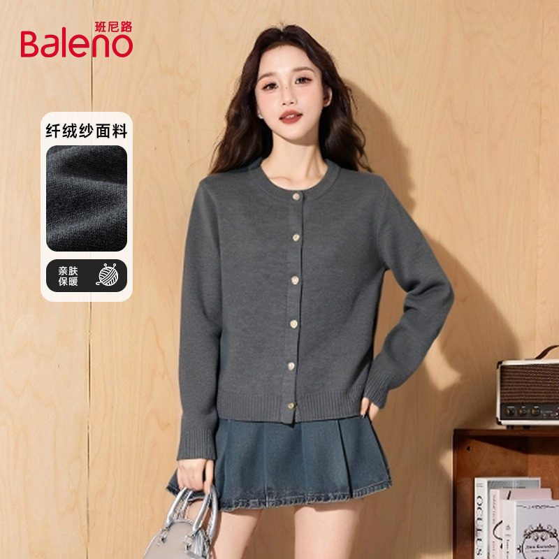 班尼路S&K系列圆领针织开衫外套女款2025秋季新款小香风休闲毛衫N