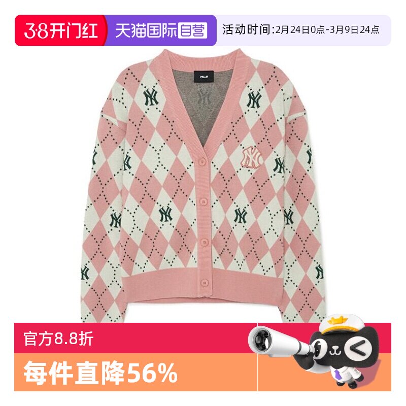 【自营】MLB女款菱格老花针织开衫美式休闲外套短款毛衣秋冬KCM01