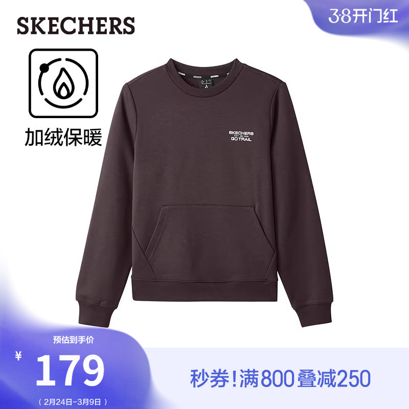 斯凯奇冬季女款加绒针织卫衣长袖圆领套头衫保暖外套柔软舒适上衣