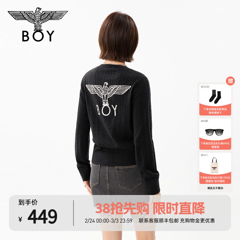 BOYLONDON春秋女款时尚前卫提花空调衫针织开衫毛衣外套W64907