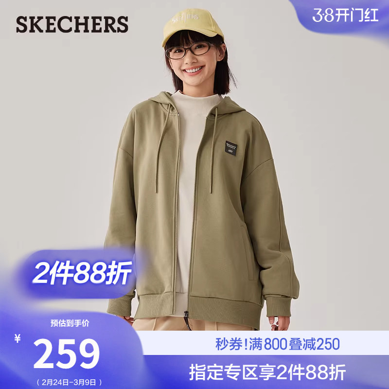 斯凯奇春季新品男女款针织连帽外套舒适休闲运动时尚百搭简约夹克