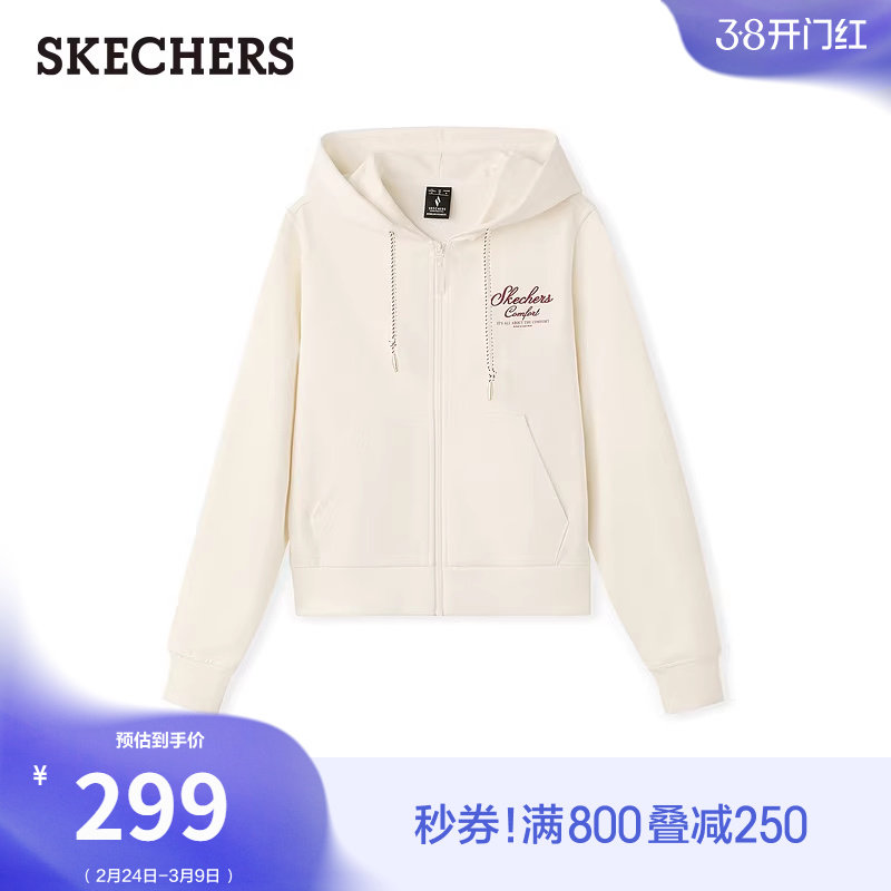 斯凯奇2026春季新款女款针织连帽外套纯棉休闲运动上衣柔软亲肤