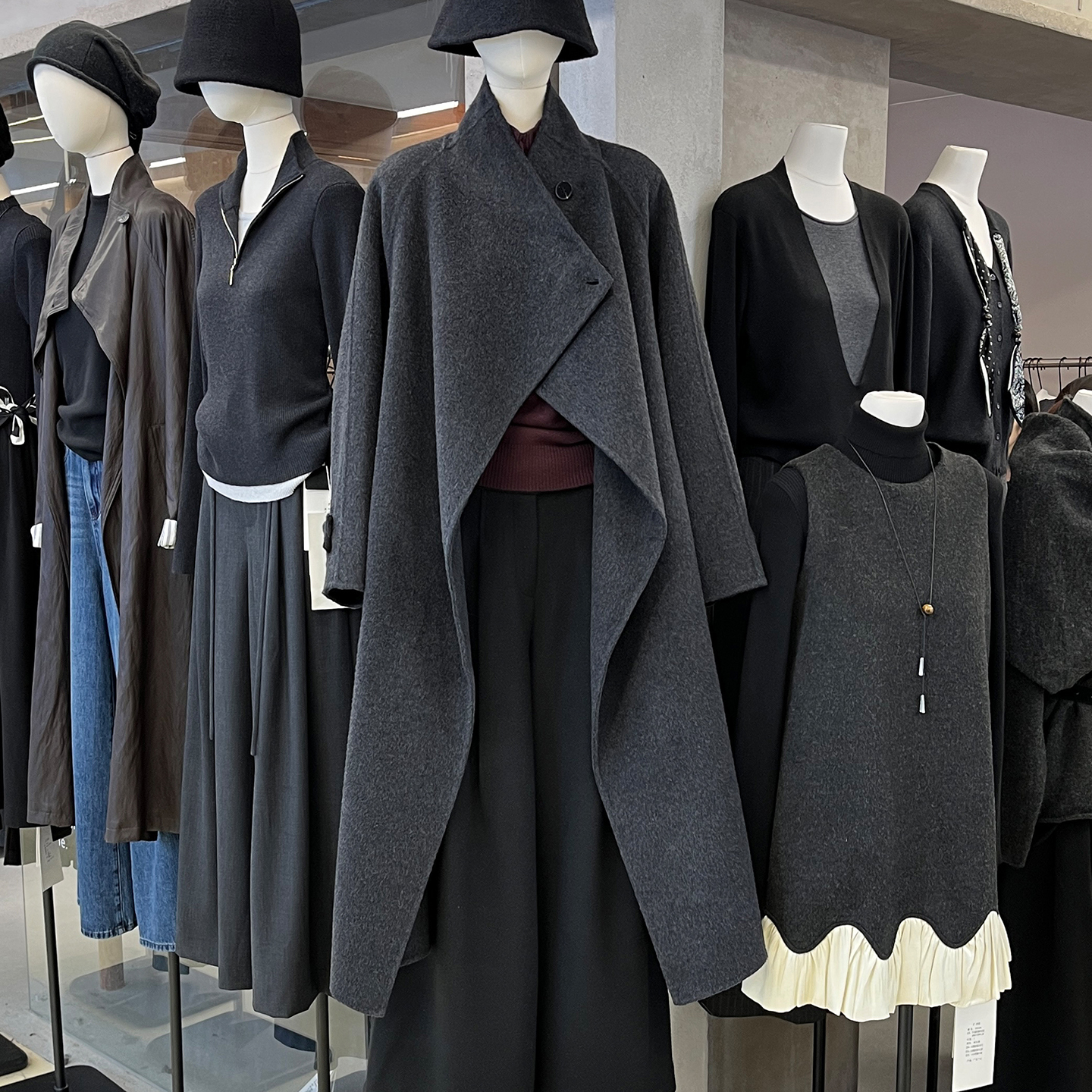 反季韩国东大门2025秋冬双面羊绒大衣女中长款灰色过膝羊毛呢外套