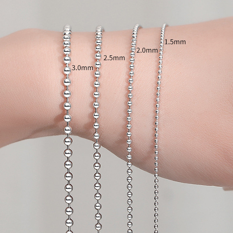 S925纯银项链圆珠链锁骨链颈链无吊坠素链符管银珠链毛衣链银链子