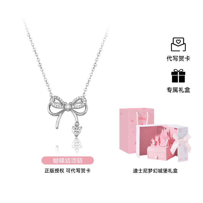 迪士尼蝴蝶结s925纯银项链锁骨链轻奢小众生日礼物送女友情人节