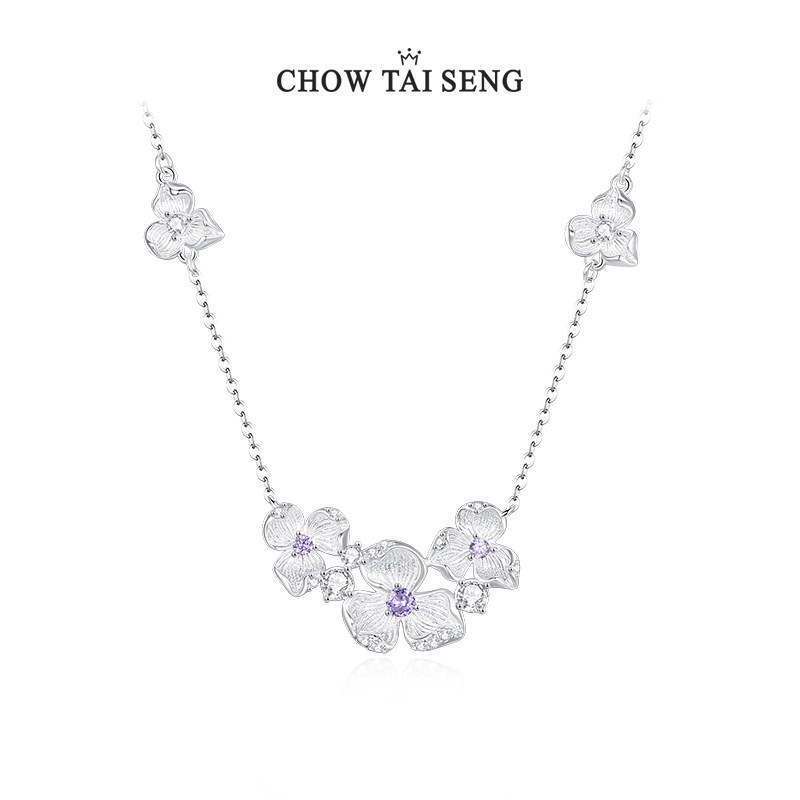 周大生微风紫藤S925纯银项链精致气质轻奢送女友高级感情人节礼物
