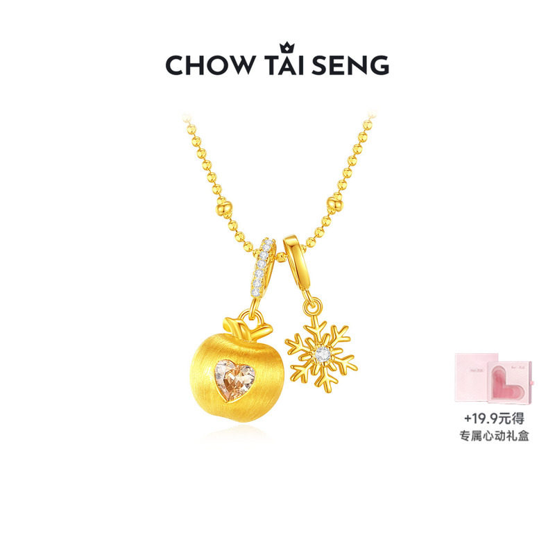 周大生苹果吊坠S925纯银项链高级感锁骨链情人节生日礼物送女朋友