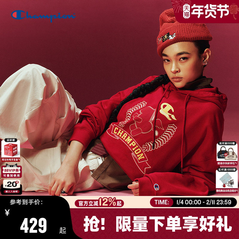 丁禹兮同款【马年系列】Champion冠军连帽卫衣男26春季新款新年红
