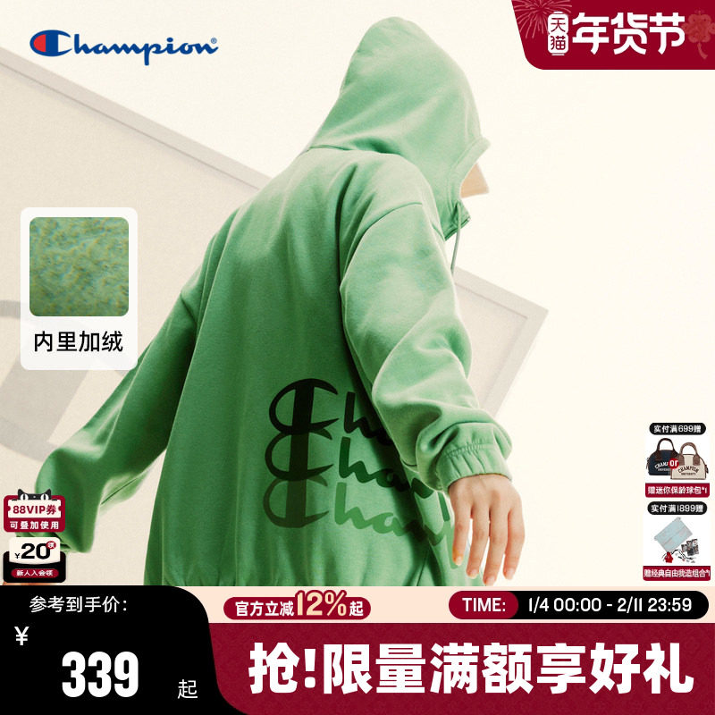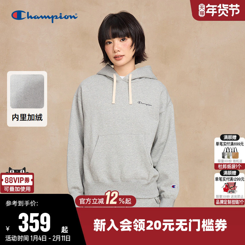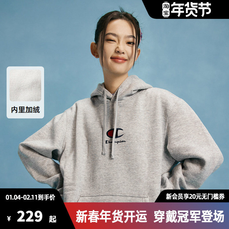 【丁禹兮同款】Champion冠军卫衣女25冬季新款情侣连帽加绒上衣男