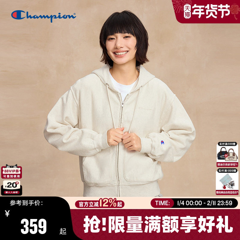 Champion冠军连帽卫衣女25秋季新款小元气少女风纯棉外套拉链开衫