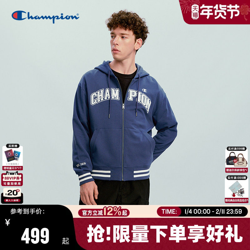 Champion冠军卫衣春秋款开衫连帽情侣春秋运动拉链外套简约休闲