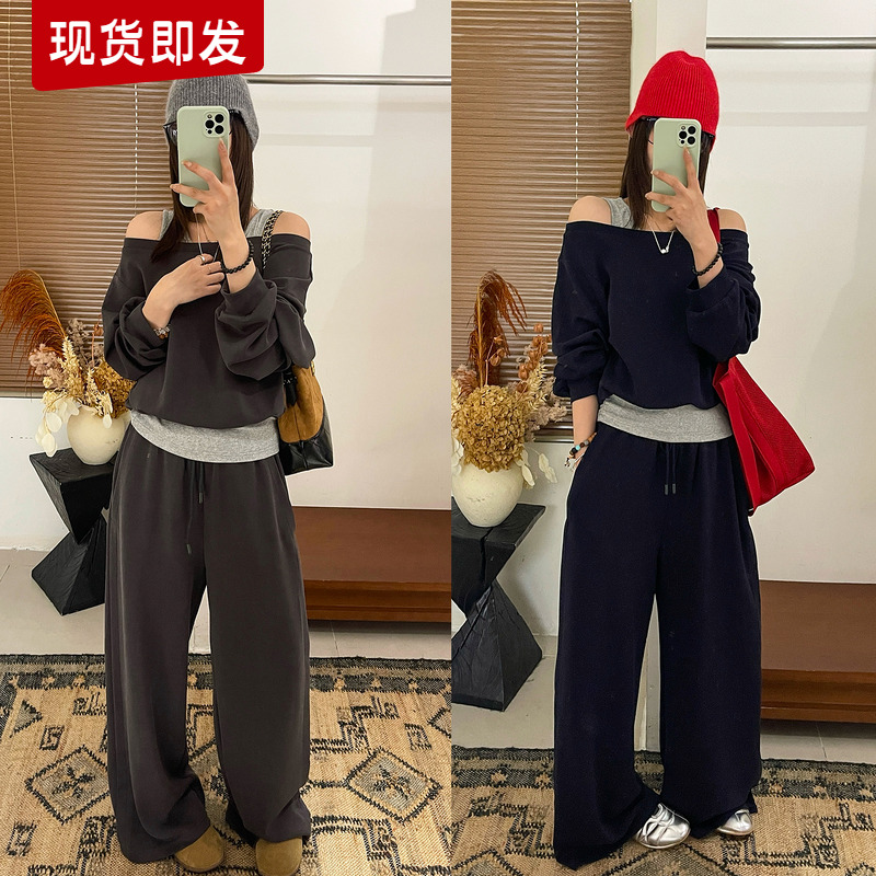一字领露肩卫衣阔腿裤两件套套装女欧洲站2025早秋新款欧货女装潮