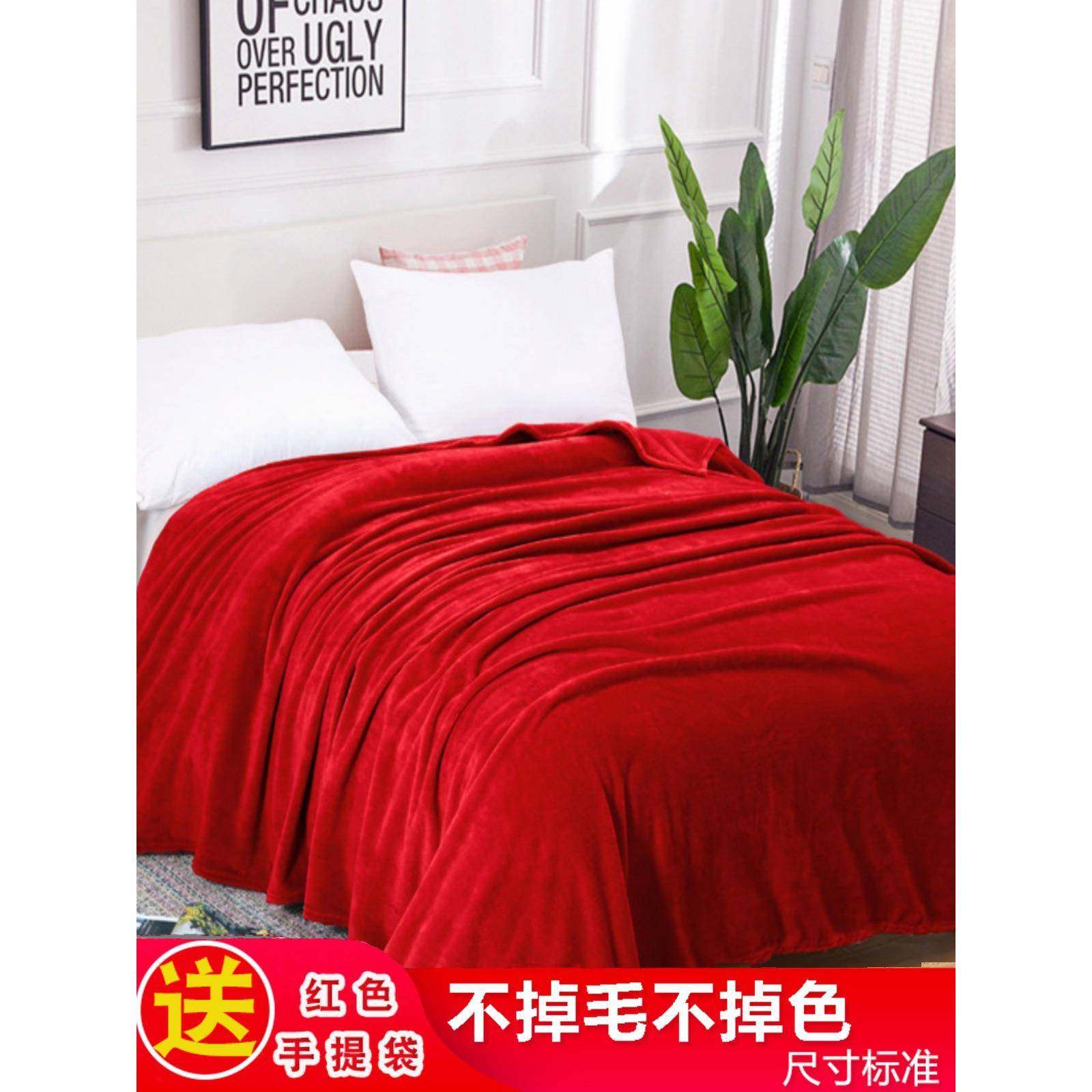大红色结婚庆毛毯冬季加厚保暖双层拉舍尔毯子单双人盖毯珊瑚绒被