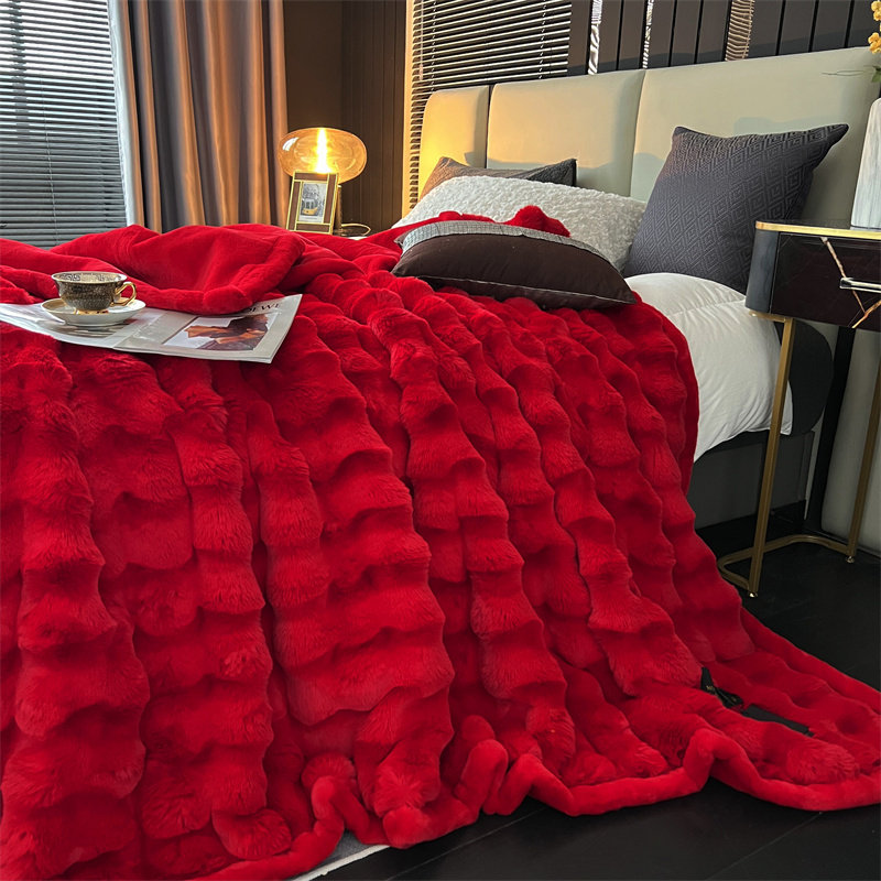 高端婚庆毛毯加厚仿兔毛裘皮草毯双人结婚大红盖毯秋冬季保暖毯子