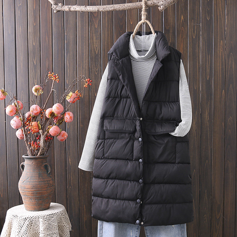 秋冬羽绒棉马甲女中长款新款韩版宽松立领坎肩背心百搭马夹外套女