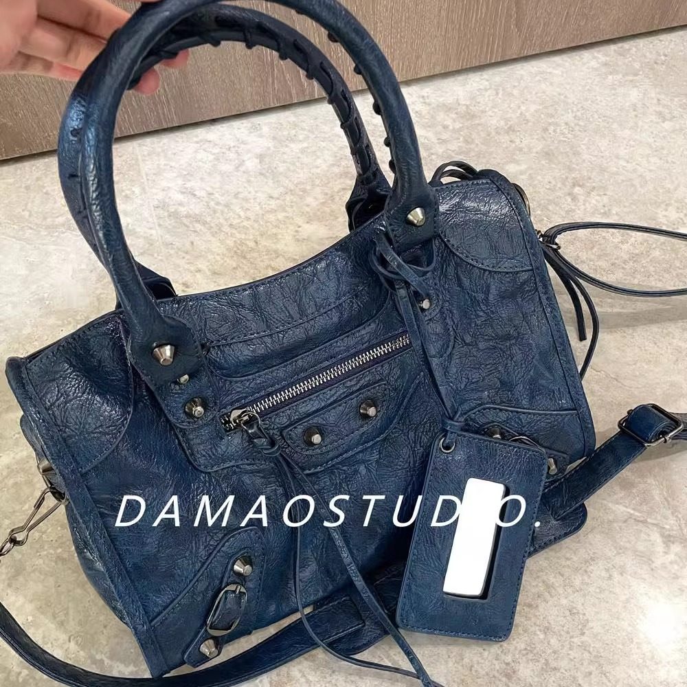 Damaostudio辣妹巴黎复古宝蓝铆钉流苏机车皮包单肩斜挎迷你女包