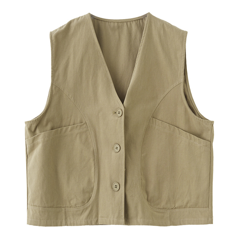 大码胖mm马甲背心女士外搭2022新款春夏宽松V领短款外套工装马夹