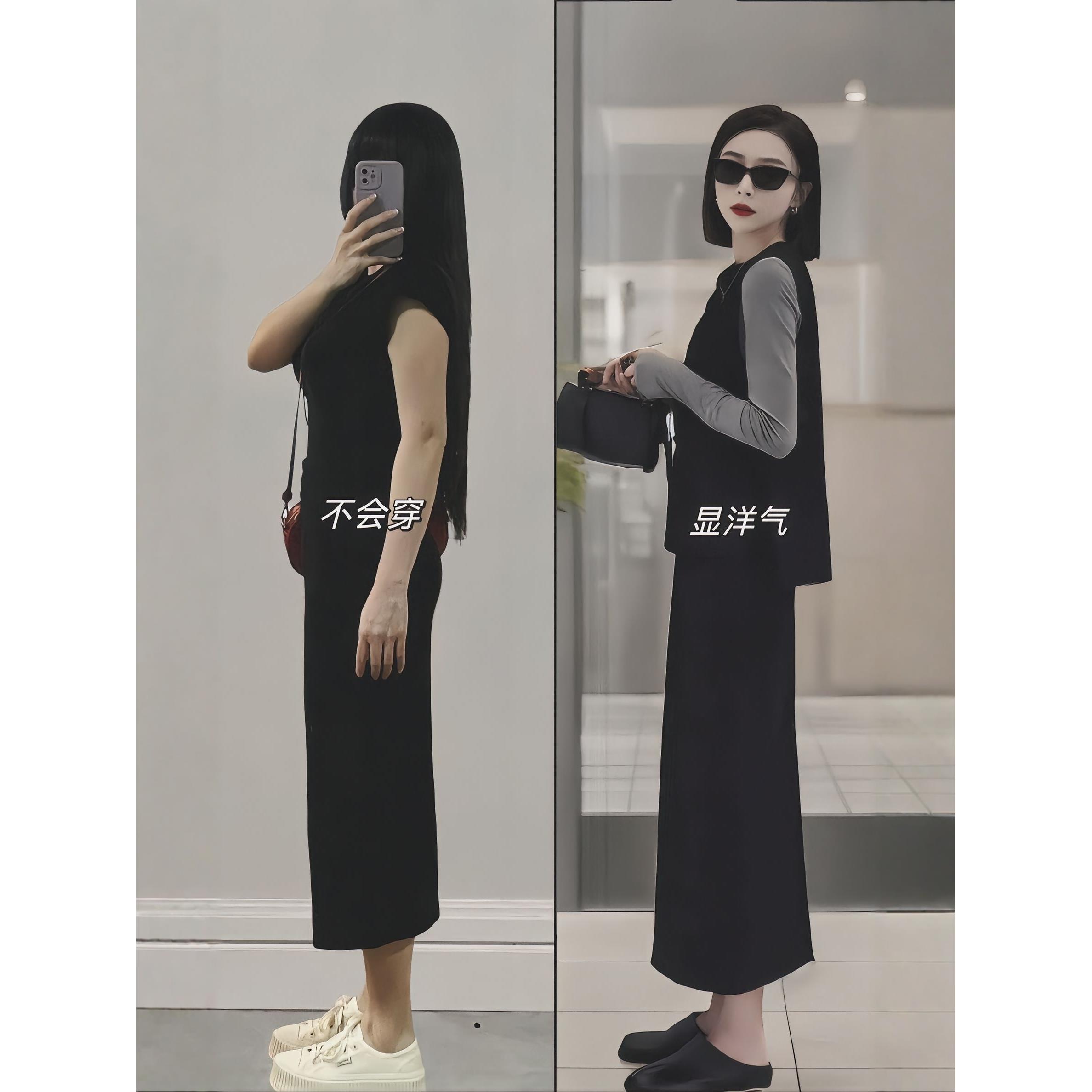 初秋穿搭一整套大码胖mm马甲上衣半身裙时尚通勤巨好看三件套装女