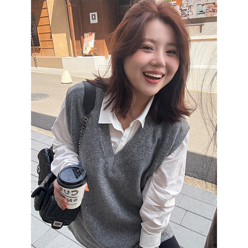 大码温柔系气质百搭针织马甲背心女秋冬叠穿内搭坎肩上衣胖mm毛衣