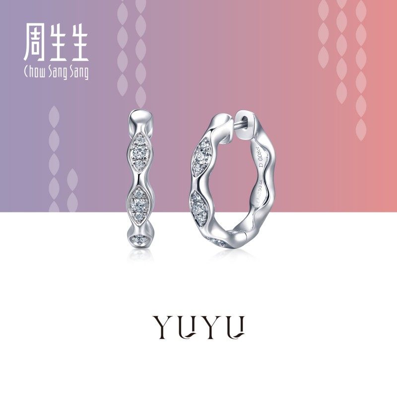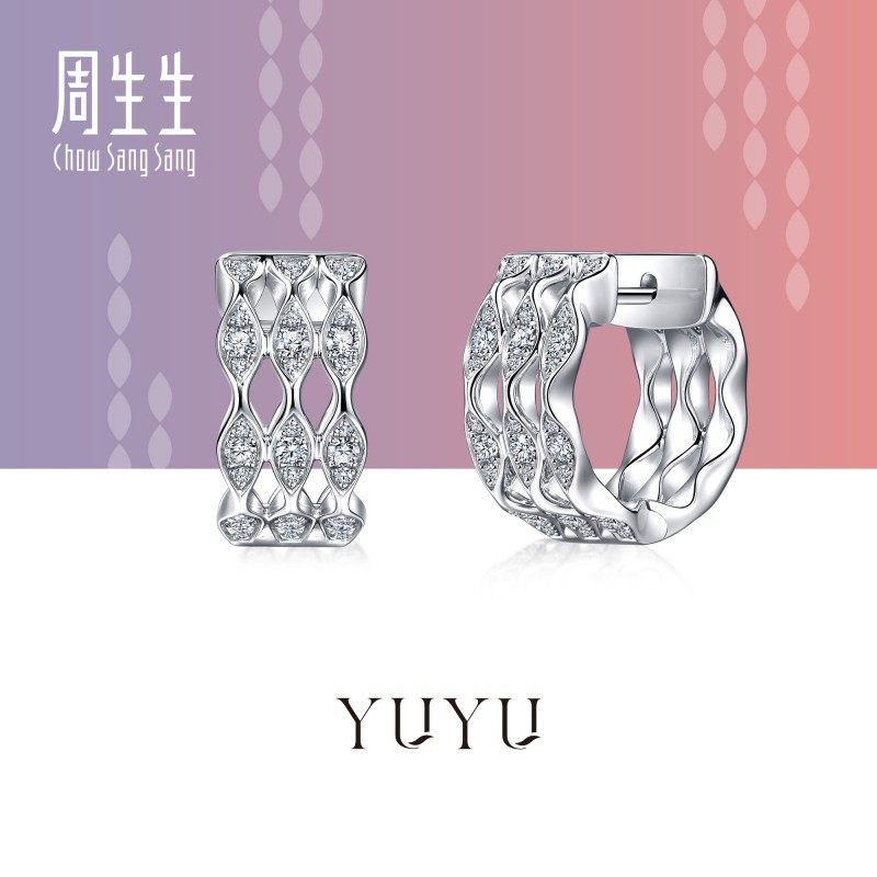 周生生珠宝饰品18K白色黄金YuYu系列钻石耳钉95327E预订