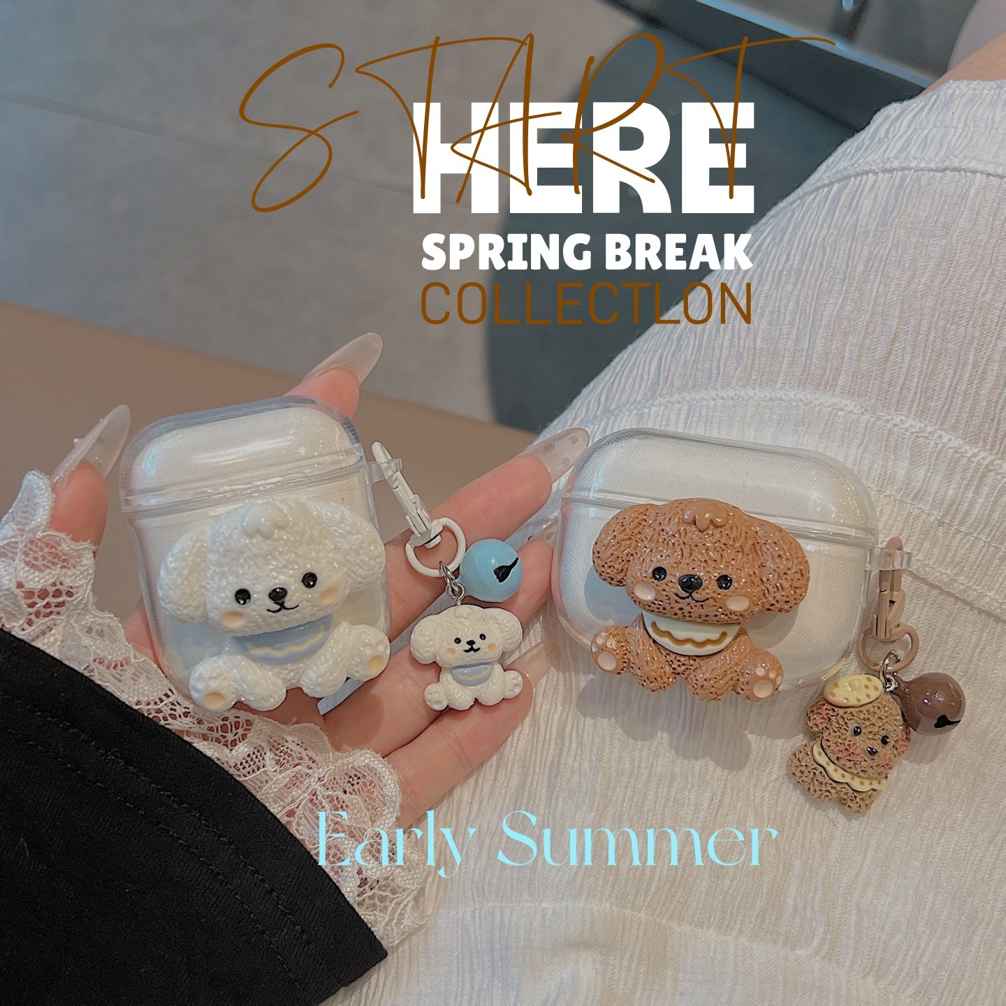 ins可爱围兜小狗适用苹果airpods4代耳机保护套AirPodspro2透明3代挂饰铃铛华强北7/6/pro5软壳mini4保护壳女