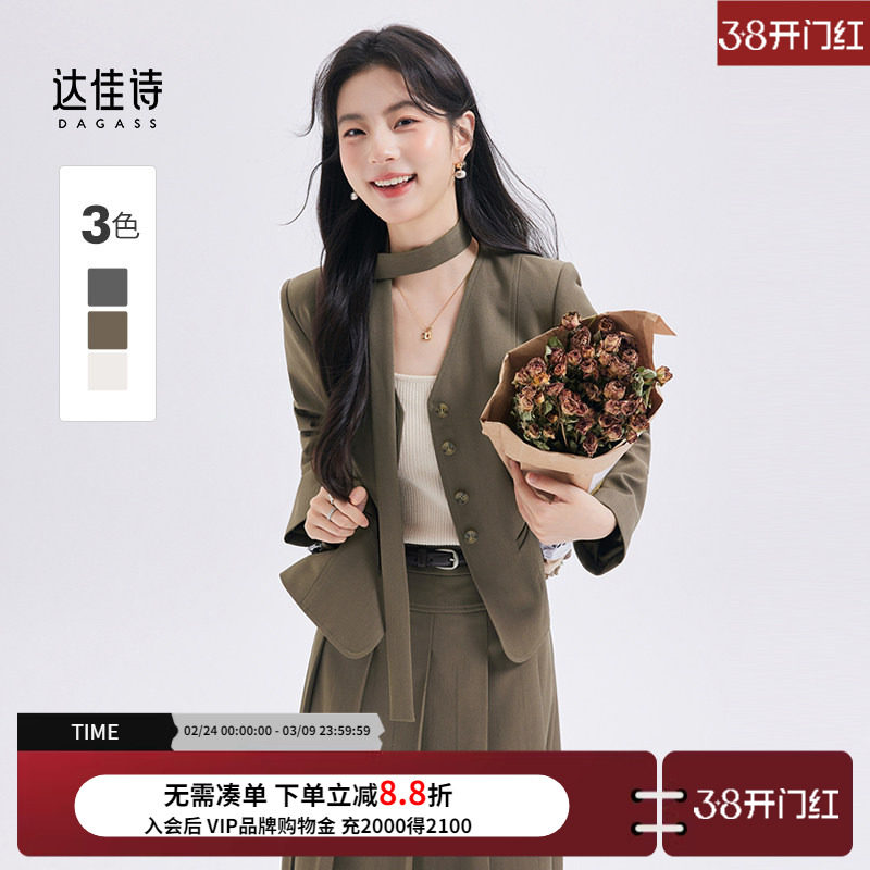 达佳诗韩版飘带西装外套女小个子高级气质休闲设计感女士西服套装