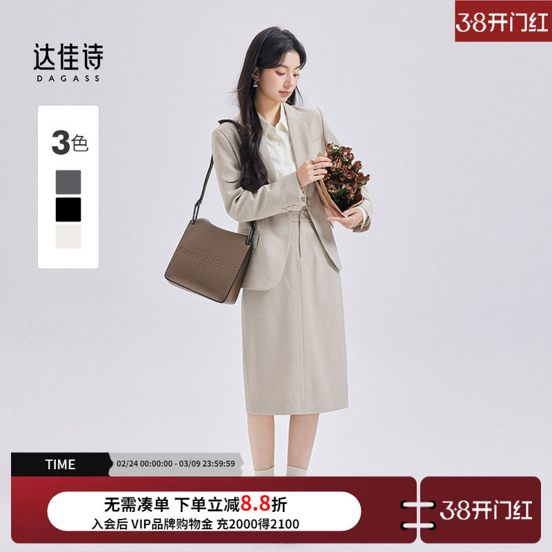 西装外套百褶半身裙制服套装女春季新款韩版宽松小个子西服两件套