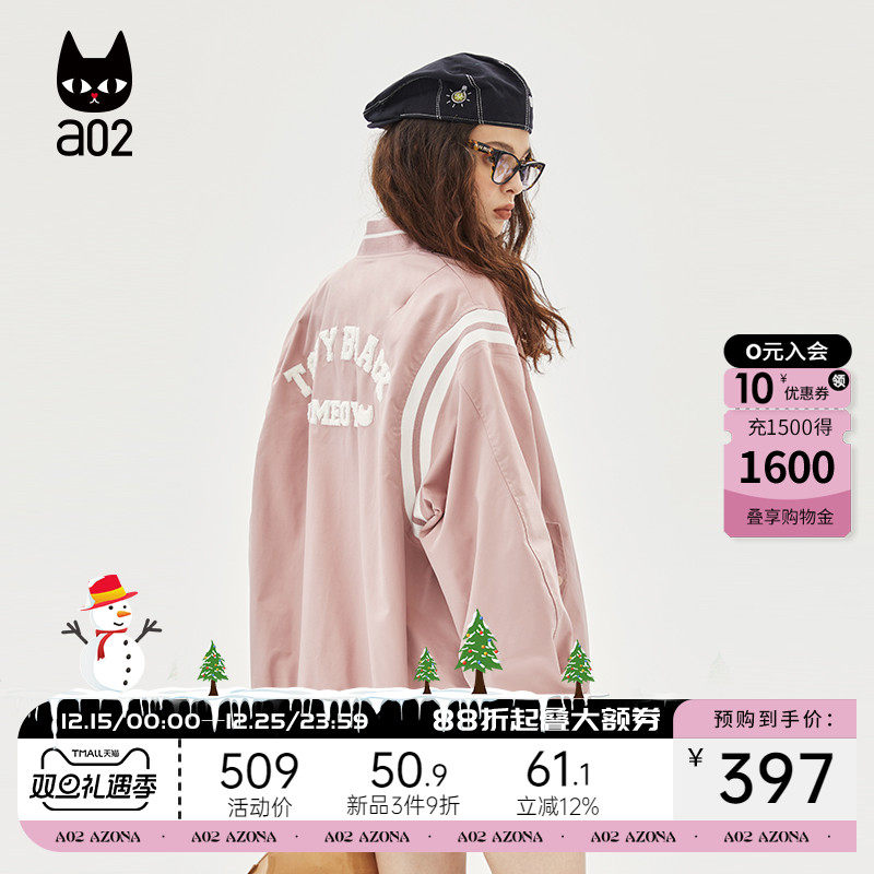a022025新款秋季棒球服绣花宽松版潮流时尚立领轻奢高级外套女
