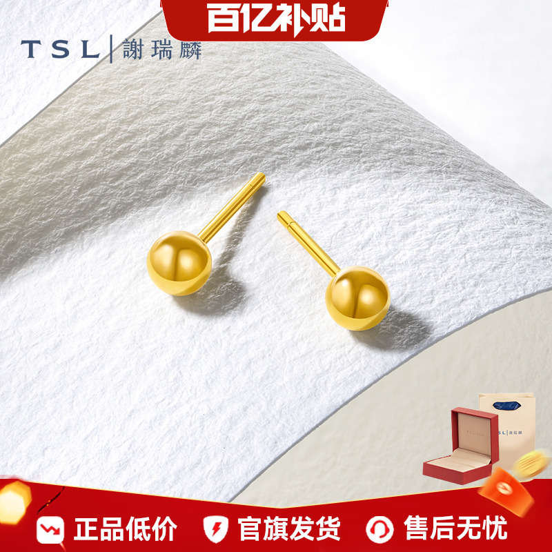 【百亿补贴】TSL谢瑞麟足金黄金耳钉光面圆球简约耳环小坠YK259
