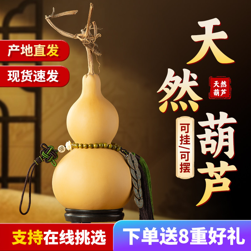 天然葫芦挂件真胡芦灸带龙头招财开口门对门客厅玄关摆件大号文玩