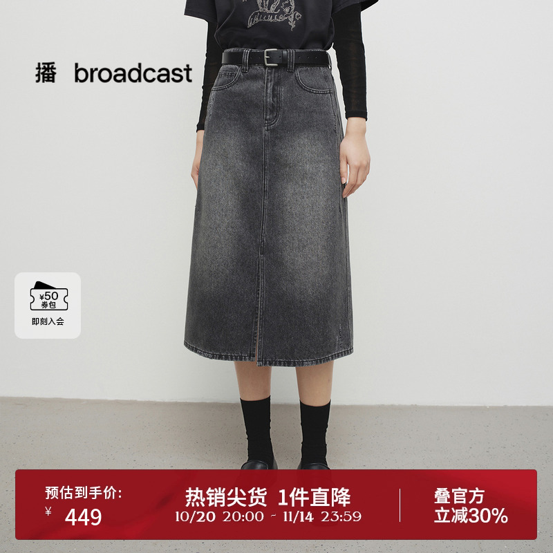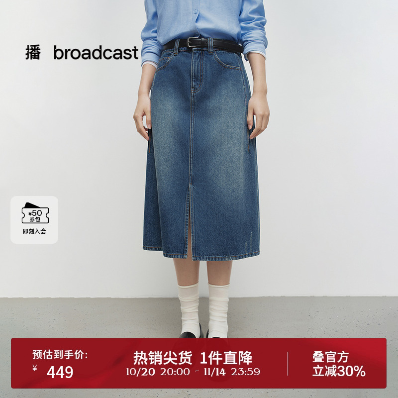 播商场同款复古牛仔半身裙女25春秋新品淡人宽松裙子BDS1BD1520