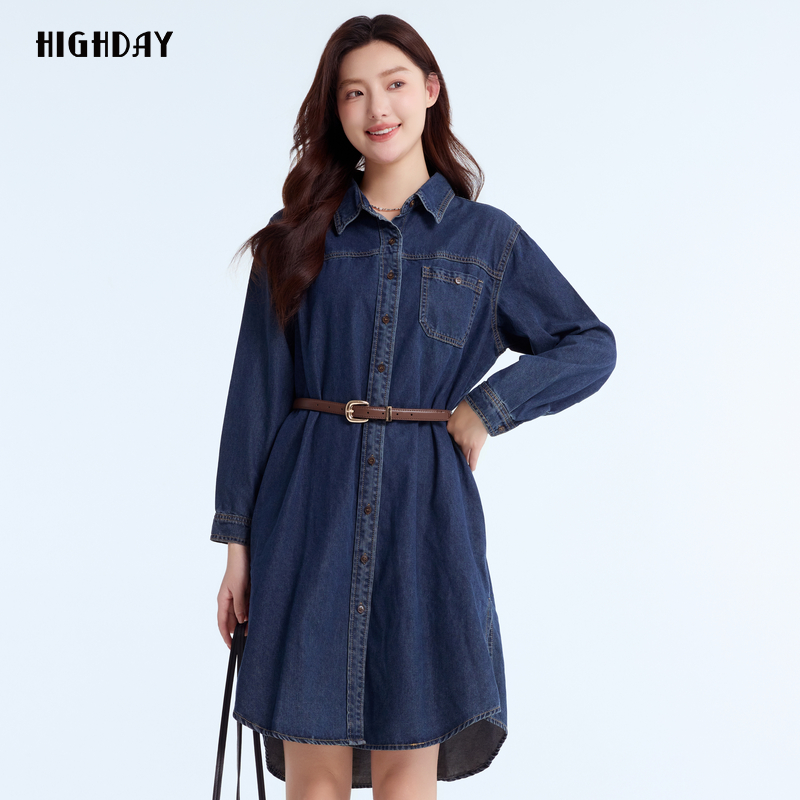 highday轩日2025春季新款长袖宽松牛仔裙女气质休闲连衣裙衬衫裙