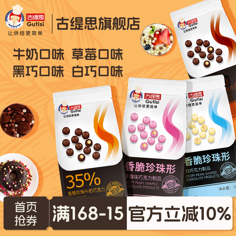 古缇思巧克力豆脆珠烘焙专用纯可可脂蛋糕装饰巧克力脆米球爆谷米