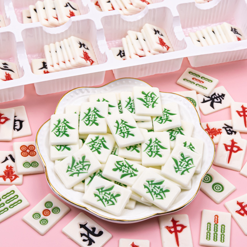 巧克力麻将牌蛋糕装饰巧克力插片万字十三幺红中发财麻将薄片摆件