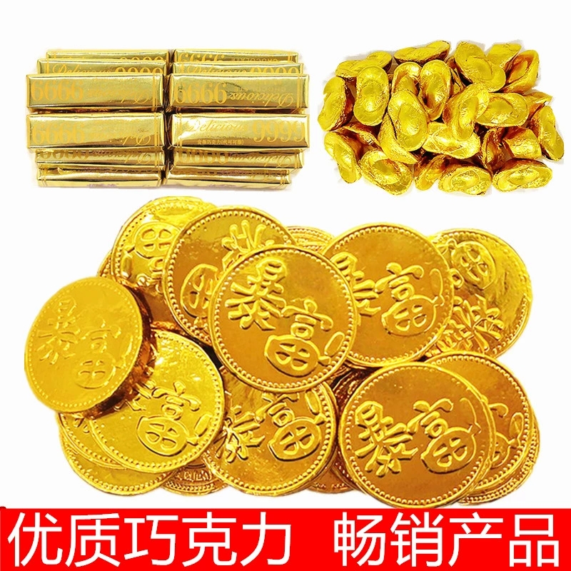 5斤装生日蛋糕装饰巧克力金条金币元宝祝寿财神婚庆摆件烘焙插件