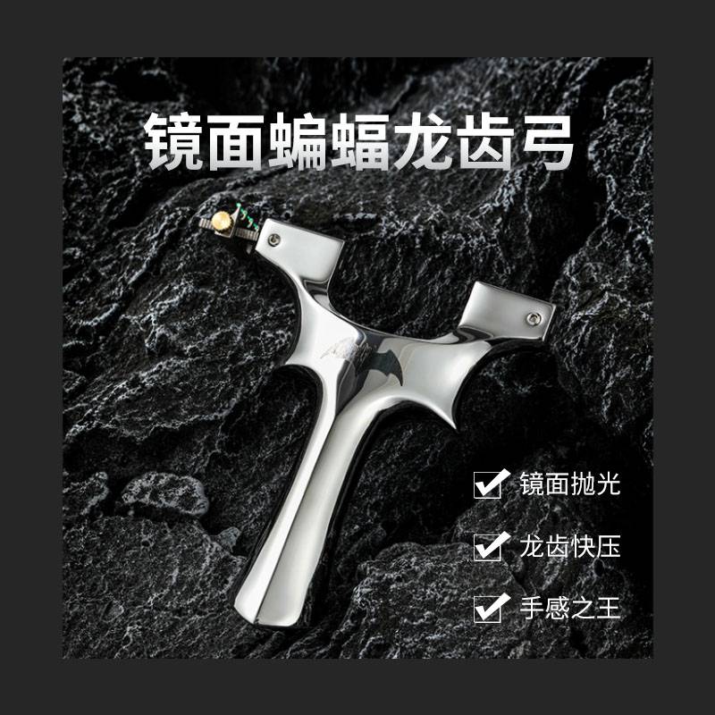普雷萨斯镜面不锈钢蝙蝠龙齿弓免绑扁皮快压弹弓户外竞技玩具架子