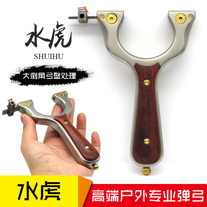 水虎新款304不锈钢一体快压实木贴片扁皮免绑户外水浒高精度弹弓