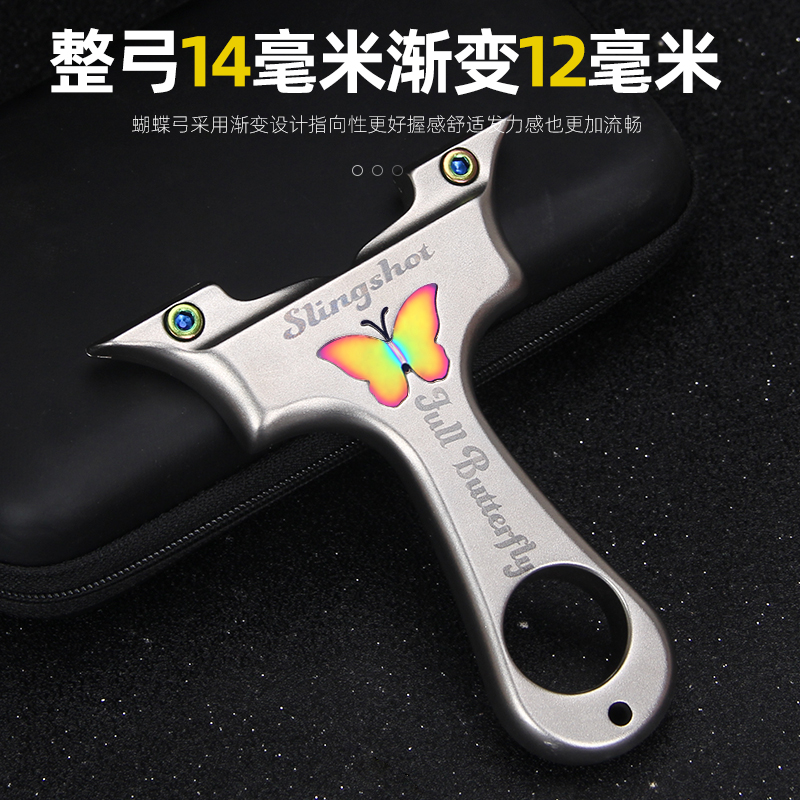 新款四代不锈钢夹片蝴蝶弹弓高精度免绑扁皮宽皮彩蝴蝶弹弓成年人