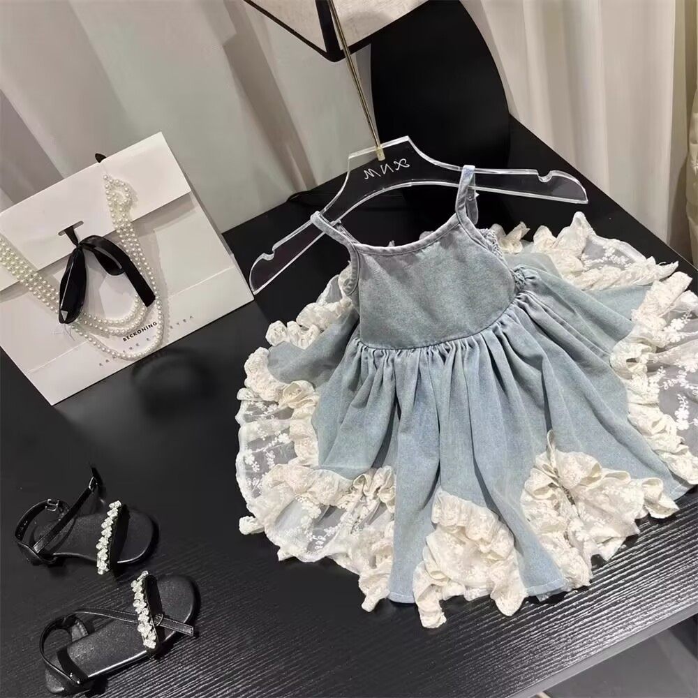 女童连衣裙夏装2025新款儿童女宝宝韩版蕾丝花边牛仔裙公主裙子