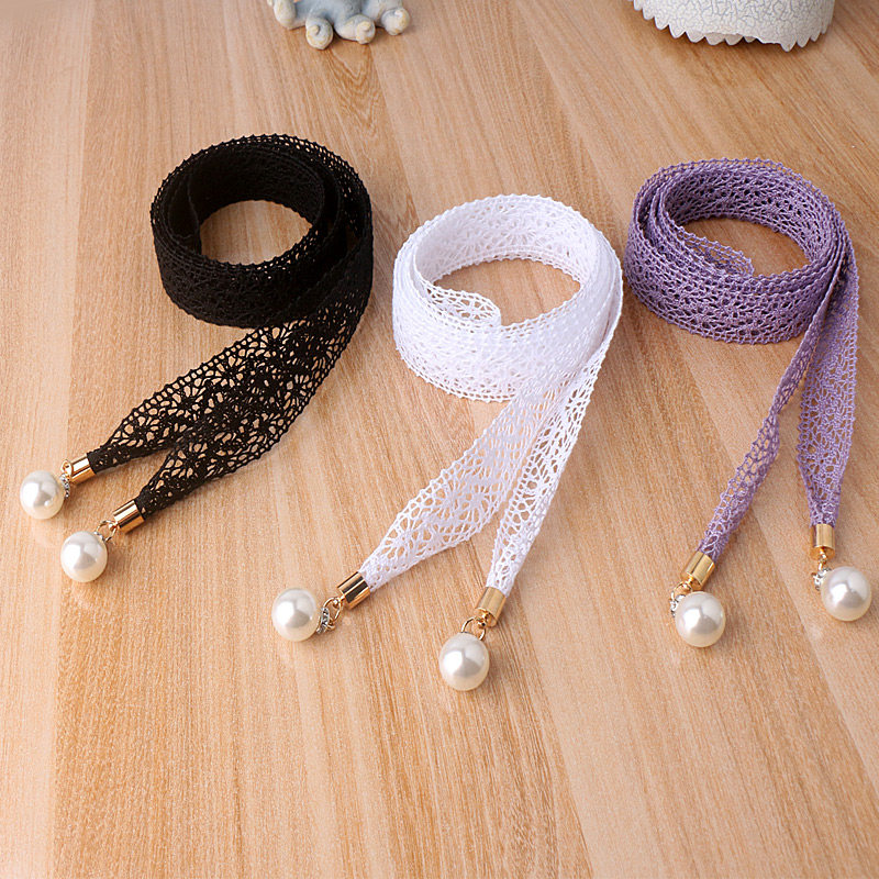 蕾丝腰带女韩版夏季收腰时尚百搭珍珠腰链大码装饰束腰绳连衣裙带