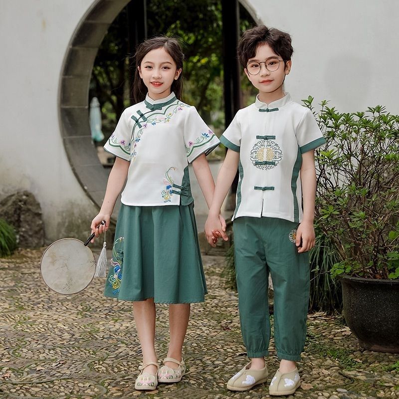 儿童汉服古装春秋男童套装中国风女童唐装连衣裙班服小学生演出服