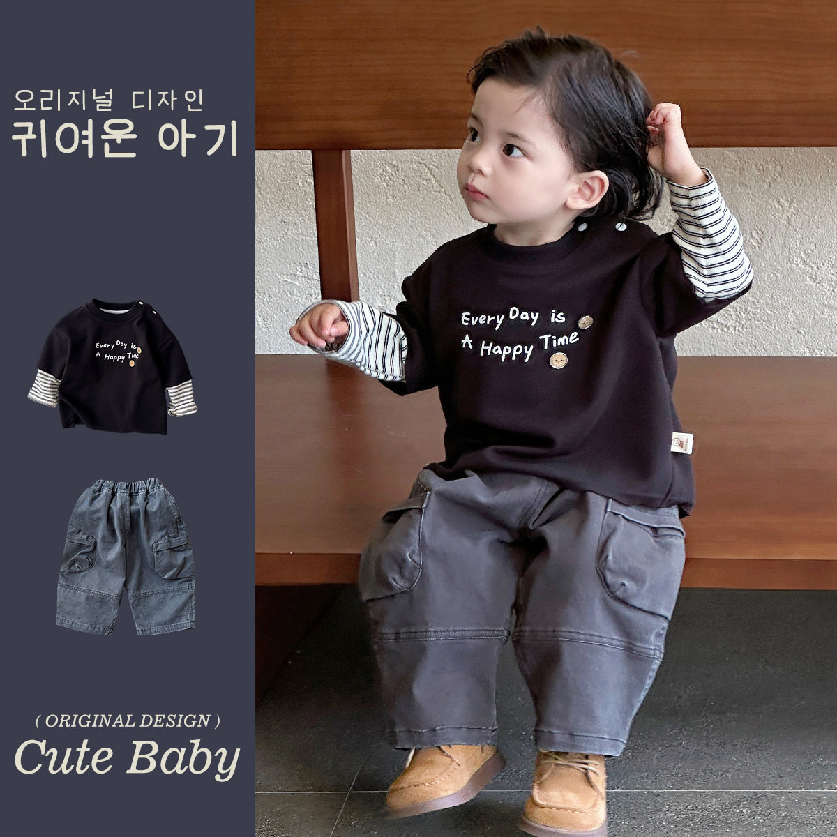 男童春秋款新款套装男宝宝可爱卡通长袖打底衫婴儿韩系条纹打底裤