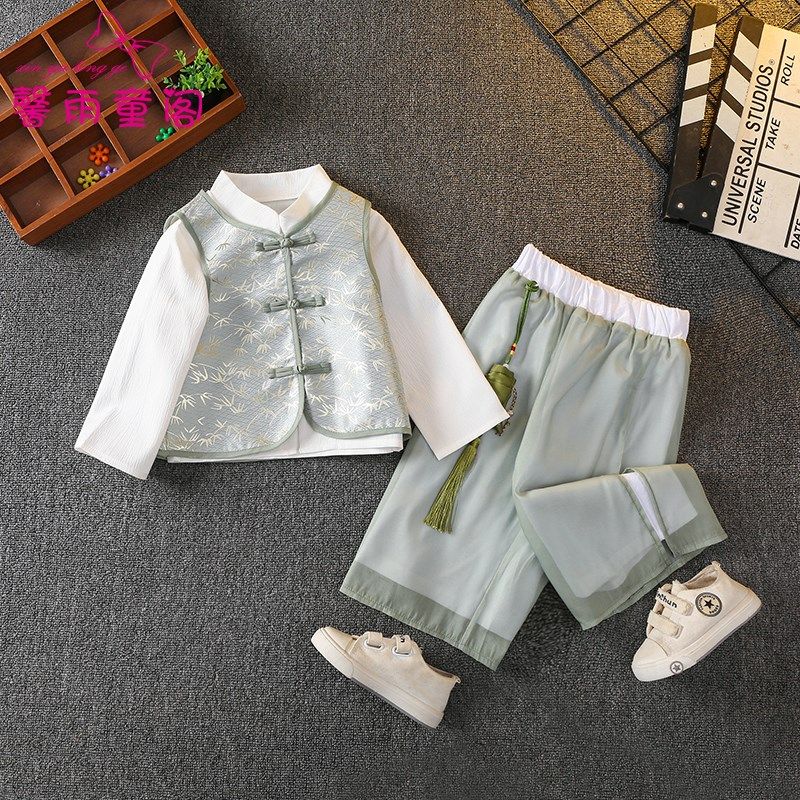 儿童汉服唐装春秋男童套装马甲三件套演出服女童幼儿园班服中国风