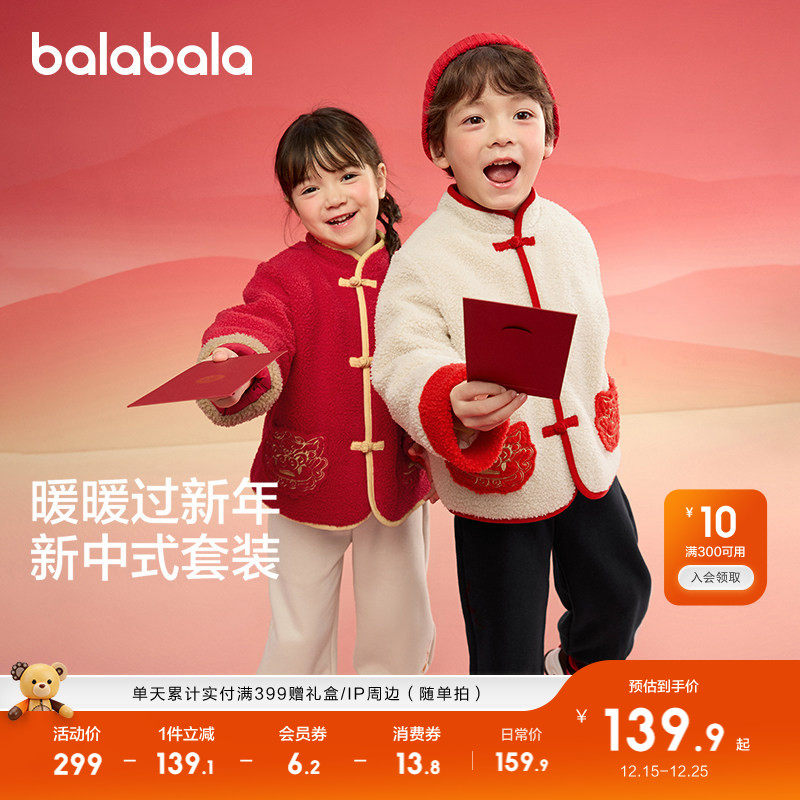巴拉巴拉童装儿童套装男童女童长袖春秋2025新款宝宝加绒新中式潮