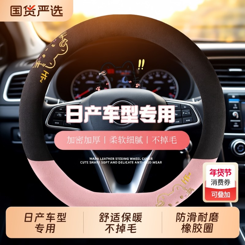 适用于日产新轩逸方向盘套冬季毛绒奇骏逍客天籁骐达劲客楼兰把套