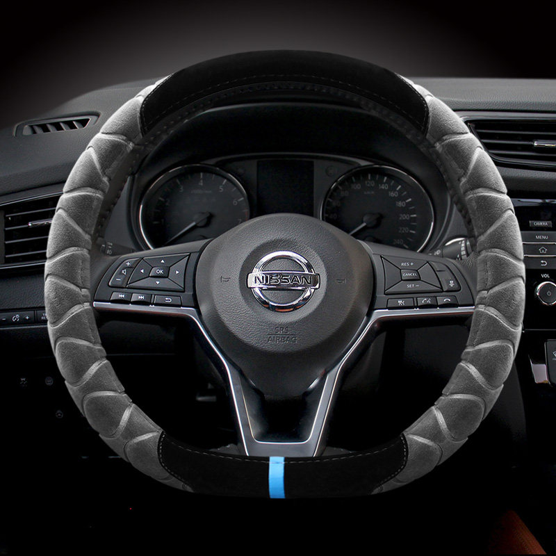 适用日产尼桑新轩逸天籁奇骏楼兰蓝鸟专用麂皮绒方向盘套防滑把套
