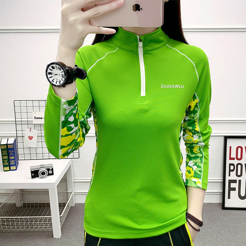 2022新款女士户外迷彩长袖立领速干衣快干透气登山徒步运动长T恤